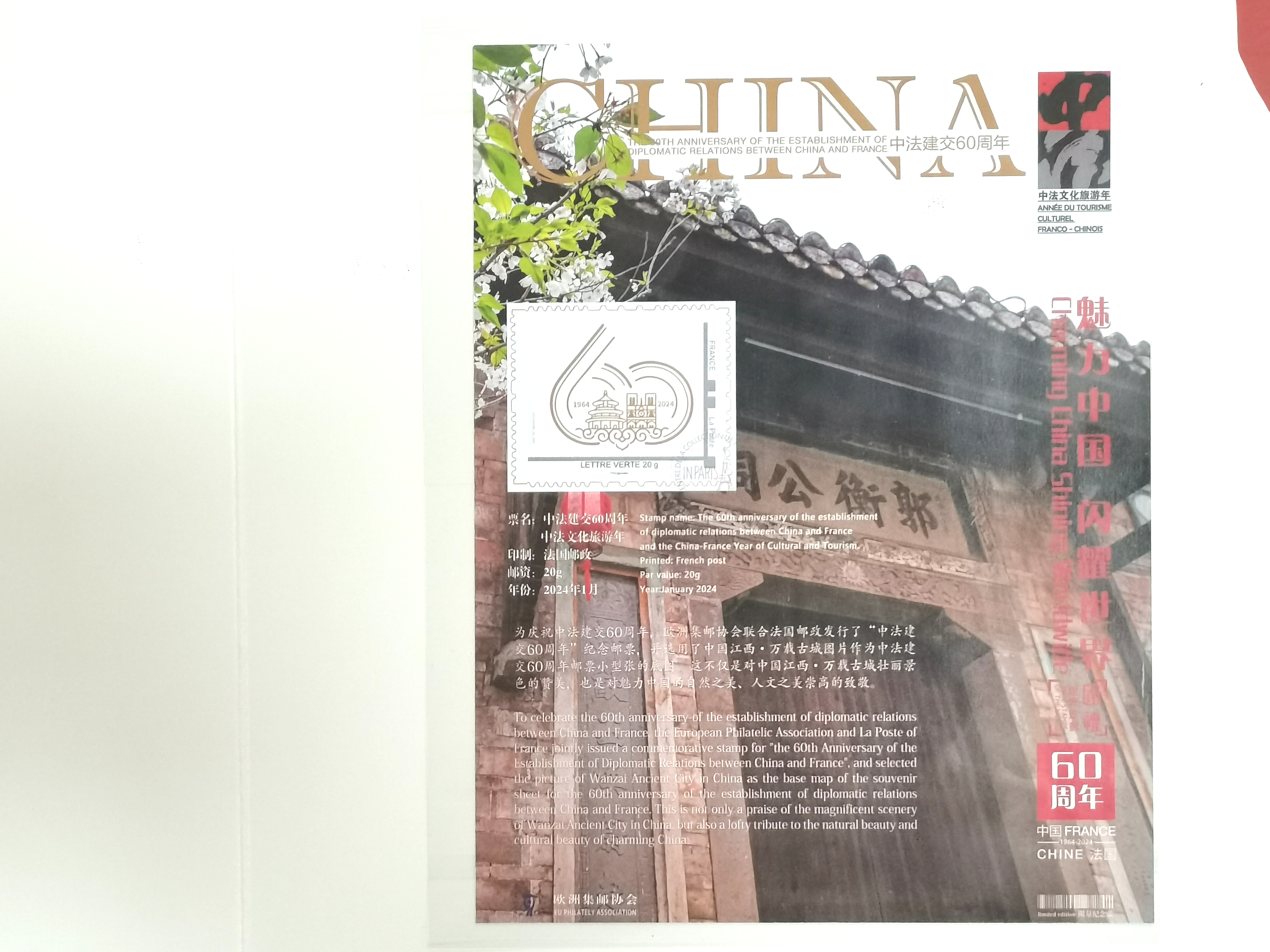 2024年是中法建交60周年暨中法文化旅游年。江西萬載古城作為中國旅游景區的代表,憑其獨特魅力,成功登上法國郵票,全球發行。這代表了國際社會對萬載古城的認可,更進一步提升了萬載古城的國際影響力和品牌價值,讓世界以郵為媒,再次發現中國之美。