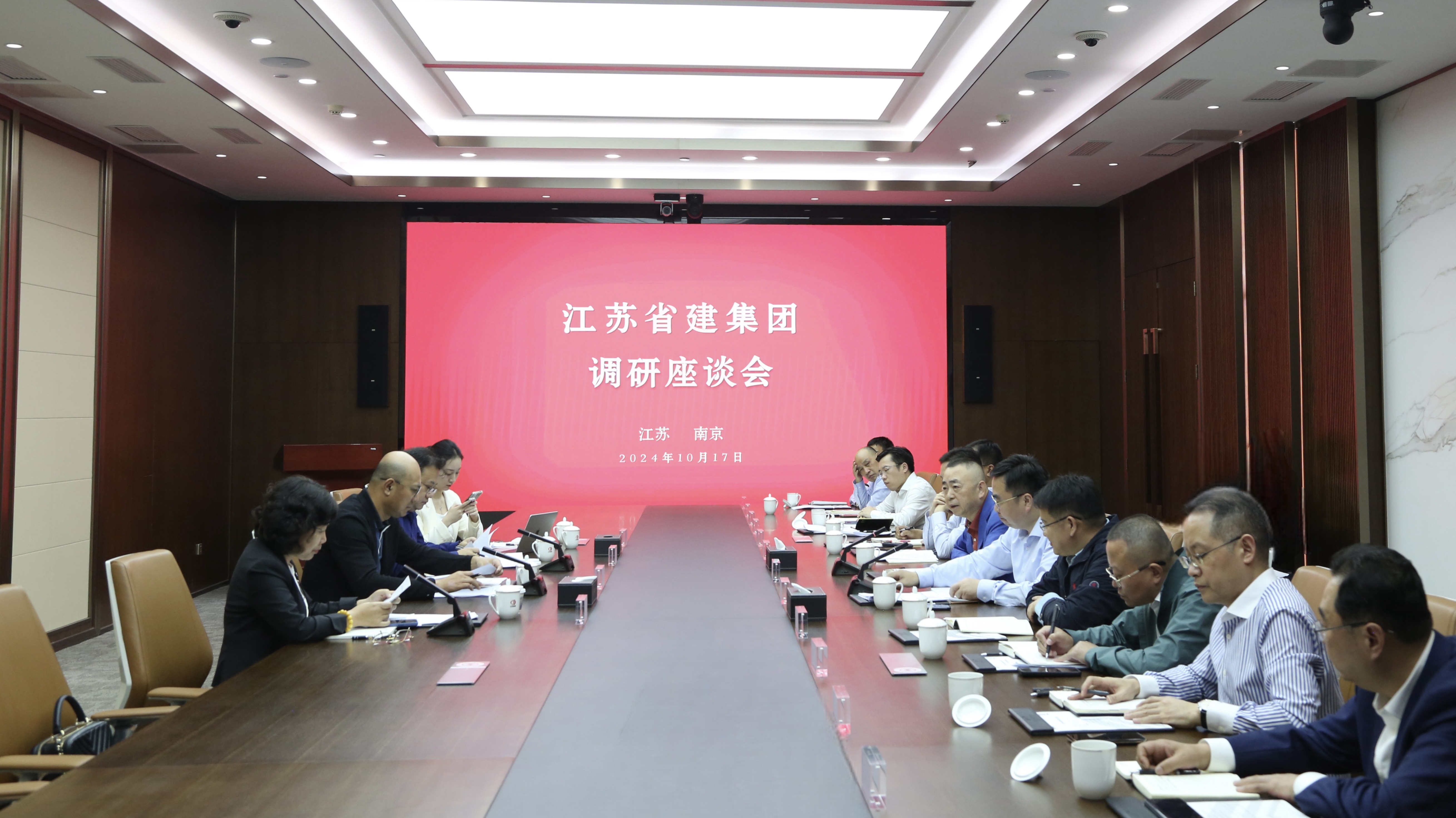 10月17日,綠地集團執行總裁、綠地大基建集團總裁陳軍一行到江蘇省建調研指導工作。集團董事長陳正華主持調研座談會,集團領導班子蔣寧、張震宇、方偉等參加。