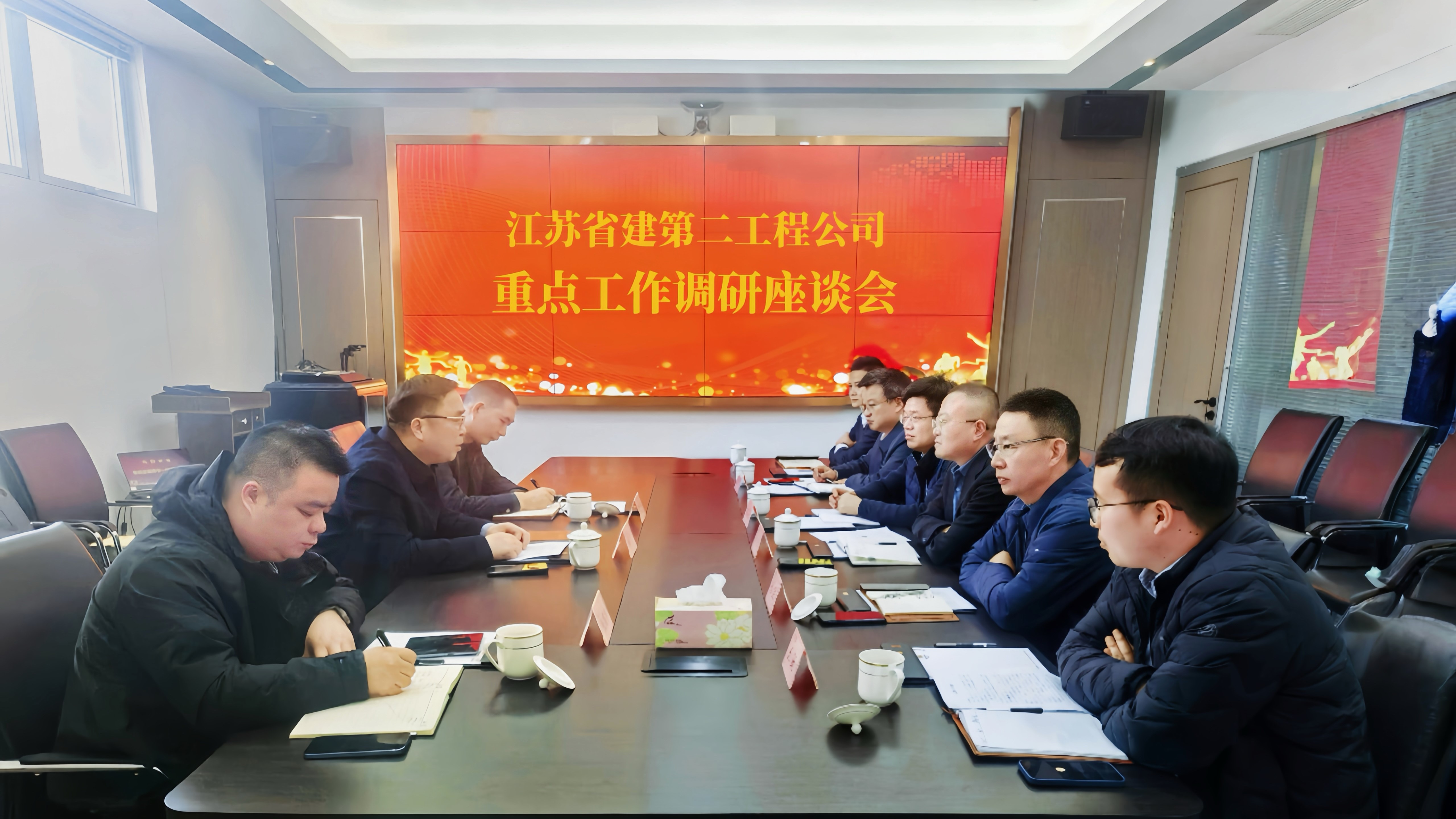 在第二工程公司調研座談會上,集團副總裁、第二工程公司董事長沈淦匯報了大客戶項目結算、清收回款、新平臺建設、管理增效、復工復產等方面重點工作。蔣寧指出,過去一年,第二工程公司面對復雜的市場環境,迎難而上、主動作為,不僅實現了穩健經營,也為集團作出了積極貢獻,成績來之不易。新的一年,要繼續開拓進取,全力奮戰。一要堅定信心,攻堅克難。著力抓好清收清欠、市場拓展等四項重點工作,細化責任分工,狠抓落實。二要閉環管控,降低風險。全面分析排查風險事項,強化監管督查,防范經營風險。三要把握節點,提升效能。靈活舉措,措施有力,點對點、人盯人,強化各項工作的精準落實,提升工作效果。