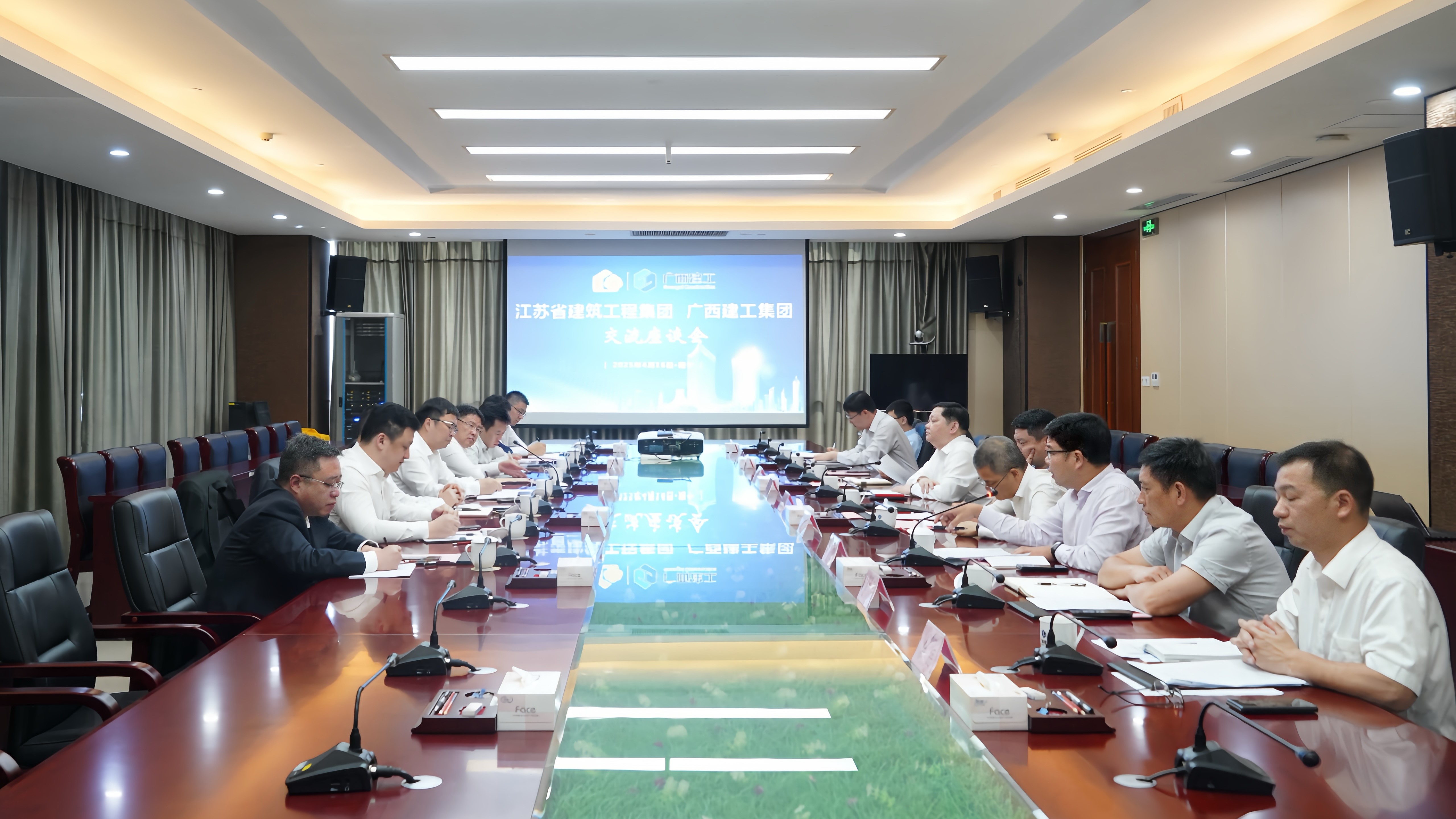 賴榆對(duì)蔣寧一行的到來(lái)表示熱烈歡迎,并介紹廣西建工近期發(fā)展情況和重點(diǎn)工作計(jì)劃。他指出,廣西建工與江蘇省建都是省級(jí)建筑企業(yè),都是綠地大基建集團(tuán)兄弟單位,在應(yīng)對(duì)新形勢(shì)、新挑戰(zhàn)方面有許多共同的話題和共通的經(jīng)驗(yàn),雙方合作交流基礎(chǔ)實(shí)、條件好、空間廣。希望雙方進(jìn)一步加強(qiáng)互動(dòng)交流,圍繞重點(diǎn)工作推進(jìn)、重大項(xiàng)目合作等事項(xiàng),加大資源共享、優(yōu)勢(shì)互補(bǔ)力度,推動(dòng)雙方在重點(diǎn)工作攻堅(jiān)中取得更大成果,在更多領(lǐng)域?qū)崿F(xiàn)合作共贏。