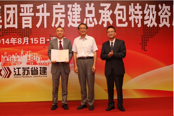 省住建廳副廳長徐學軍祝賀江蘇省建申特夢想成為現實。他說,省建申特一舉成功,在全省率先取得新一輪特級資質,值得全省建筑業慶賀,而省建的歷史將翻開新的一頁。他希望江蘇省建集團吃透中央城鎮化會議精神,抓住這難得的發展機遇,繼續堅持人才戰略、管理現代化戰略、質量興業戰略和品牌戰略,積極提升企業的市場占有率、核心競爭力、產值利潤率和品牌影響力,從而做大做強企業的綜合實力。他還將“新起點、新征程,共創明天新輝煌;抓機遇、迎挑戰,譜寫省建新華章”兩句話贈送給與會人員,勉勵全體省建人以特級資質為切入口,搶抓戰略機遇,為推動全省建筑業又好又快發展作出新貢獻。