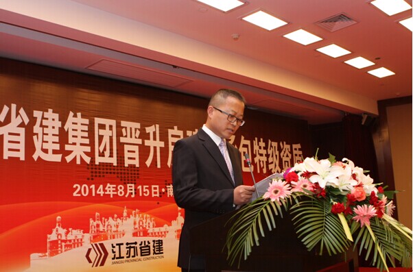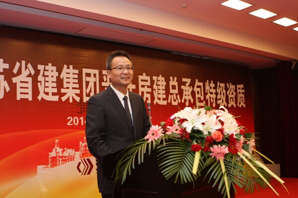 集團公司董事長陳正華發表了熱情洋溢的致辭。他在講話中對為申特工作付出艱辛努力的集團廣大員工和所有關心和支持江蘇省建申特工作的各級領導表示敬意和感謝。陳正華說,獲得房建總承包特級資質是數代省建人夢寐以求的目標,是江蘇省建改制以來最重要的戰略任務之一。七年前我們與特級資質失之交臂,七年來我們對特級資質的夢想和追求從來沒有松懈過。為了實現這一目標,我們成立了以仇天青總裁為組長的特級資質申報領導小組,吃透新標準的精神,制定了詳細的房建特級資質升級的申報方案,從“企業資信能力、專業技術人員、科技進步水平、信息化管理、代表工程業績”等方面,對照標準要求,對集團公司的情況進行全盤梳理,逐一落實。在經過長達七年的申報過程中,集團各單位、各部門通力合作、不懈努力,克服了申報過程中的諸多困難,使江蘇省建集團全面達到了《特級資質新標準》規定的各項指標,順利地通過了資質審查核準過程中的業績核查、資料審查、實地核查等全部環節,集團成為《特級資質新標準》頒布后七年來江蘇省第一家申特成功的企業。