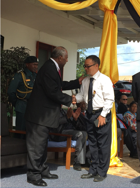 朗斯代爾總統(tǒng)向袁剛頒發(fā)“瓦努阿圖獨立勛章”